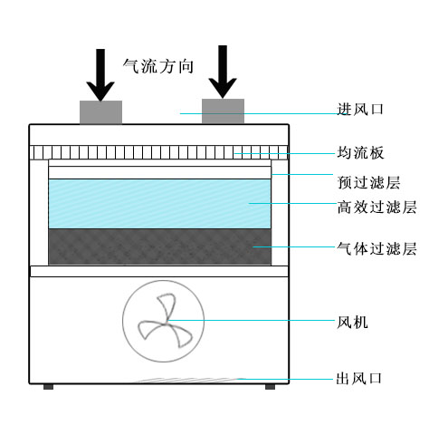 2.主過濾層過濾梯度設置:初中效過濾+HEPA高效過濾。淨化顆粒直